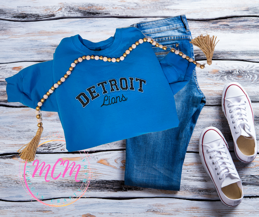 Honolulu Blue Lions Glitter Embroidered Crewneck