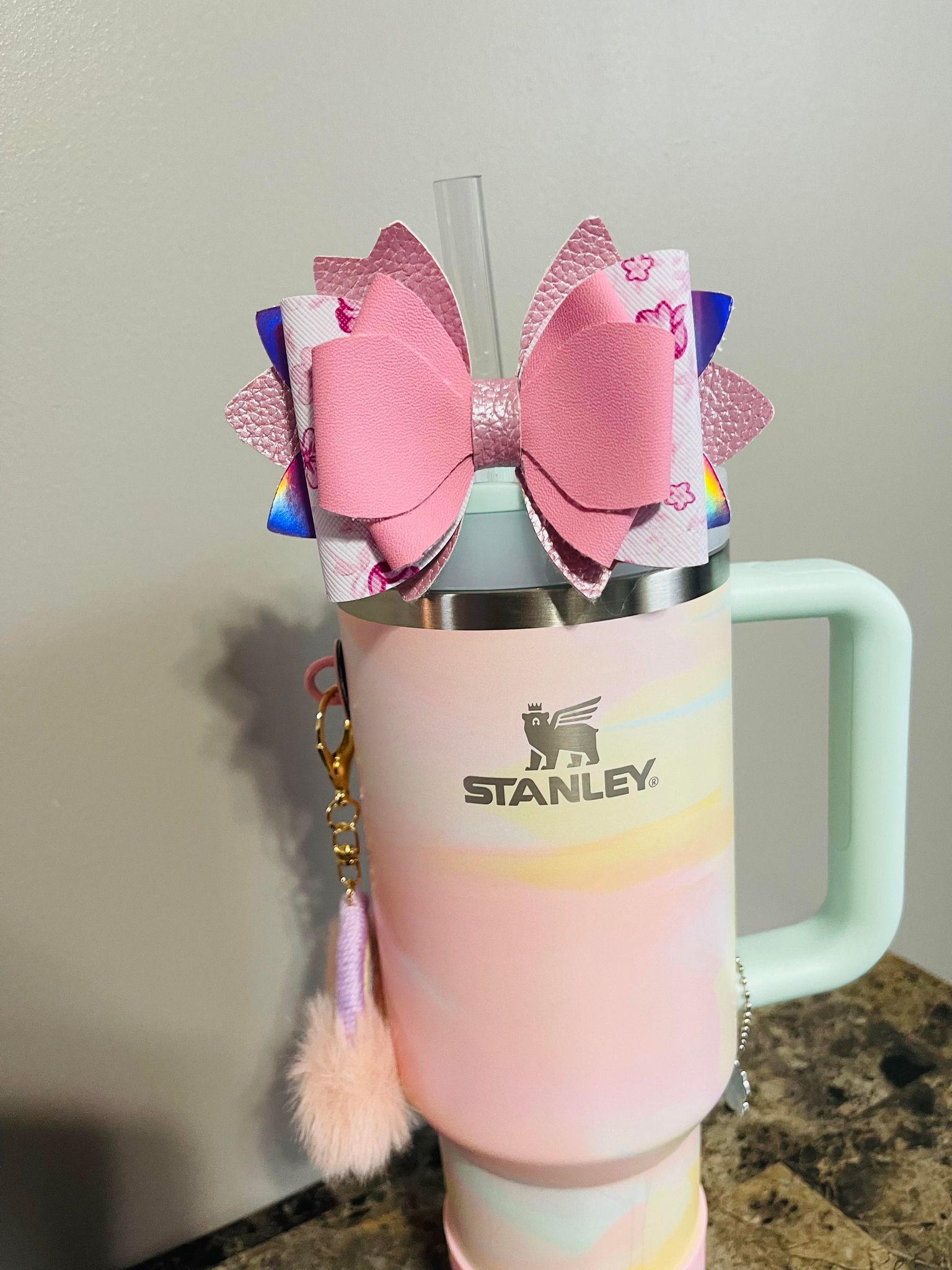 Our Bow Toppers are expertly crafted to fit a 10mm straw, unless otherwise specified, and seamlessly pair with popular brands like Stanley Quencher and Simple Modern Trek Straws. Please note that we have no affiliation with these companies; we mention them solely for measurement purposes.