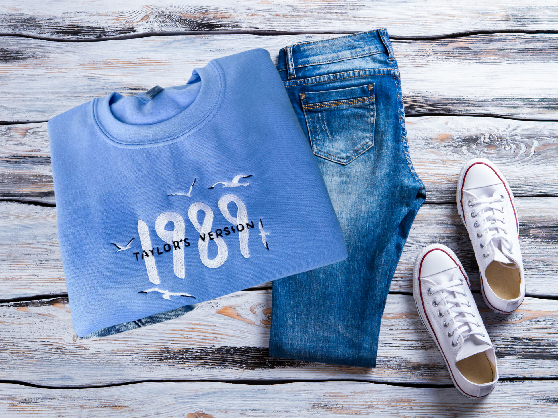 Custom embroidered 1989 Taylor's Version sweatshirt. Perfect for the Swiftie in your life.