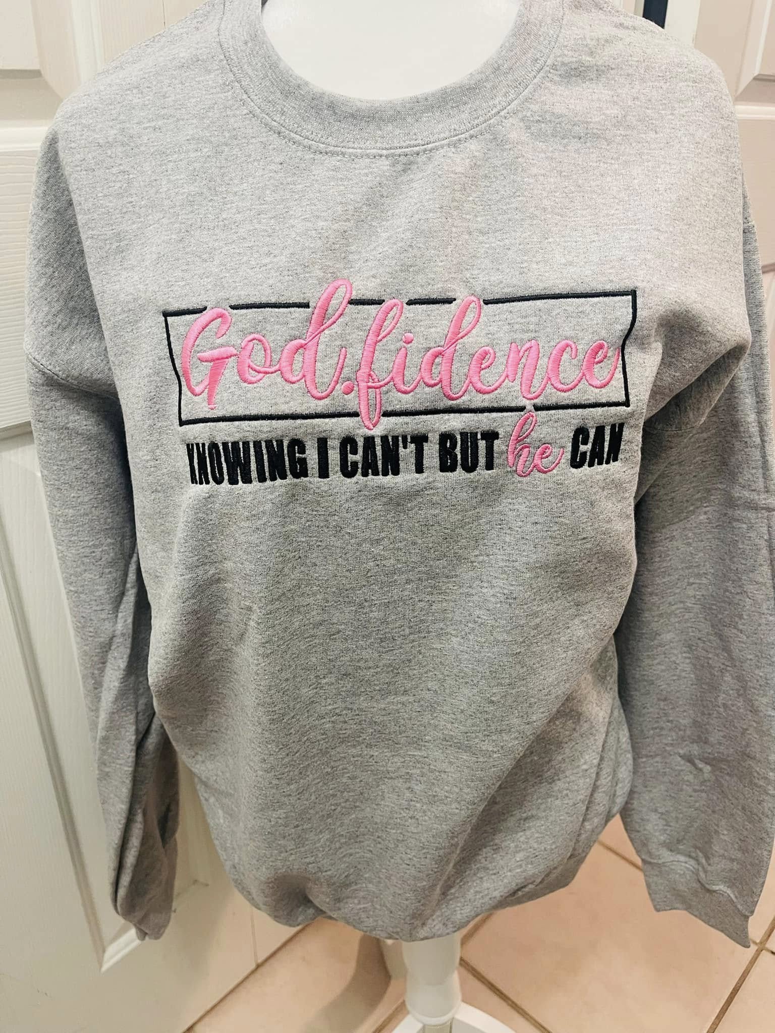 Stay Cozy in Faith with Our Beautiful Embroidered "Godfidence" Sweater!