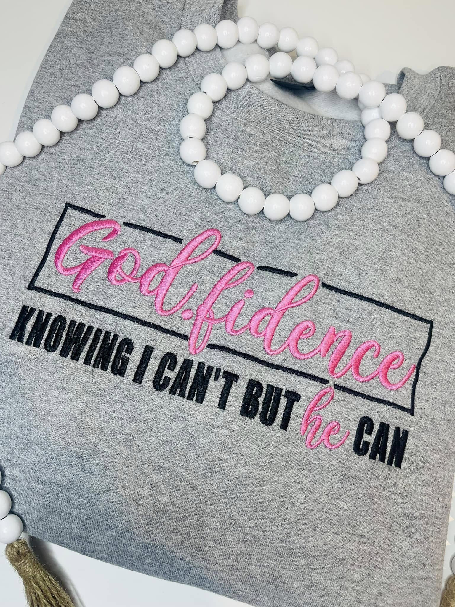 Wrap yourself in warmth and inspiration with our Godfidence sweatshirt, featuring high-quality embroidery on a soft, comfortable fabric. This stylish and faith-filled piece is perfect for anyone who walks in confidence, knowing that while we can't, He can.